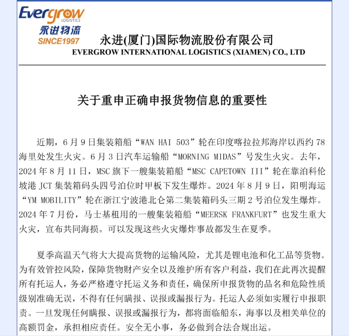 关于重申正确申报货物信息的重要性